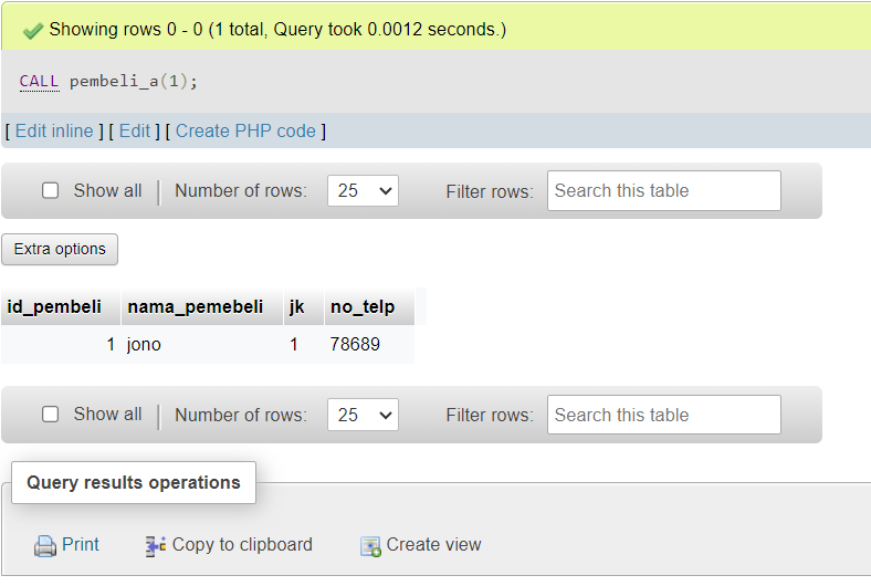 1. Langkah pertama klik dibagian routine sesuai dengan nama yang di inginkan dan masukkan kode sql dibawah
